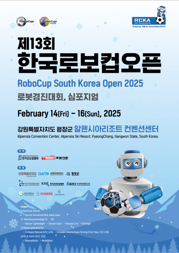 한국로보컵협회와 로봇신문이 주최하고 평창군, 강원관광재단, 산업통상자원부, 한국로봇산업진흥원 등이 후원하는 이번 대회는 2월 15일 개막해 16일까지 이틀간 개최된다.
