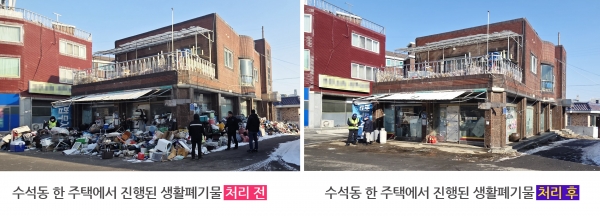시에 따르면, 해당 주택 외부 주변에 생활폐기물 적치행위가 지속 반복됨에 따라 해당 주택 인근 주민들의 불편이 지속돼 왔다.