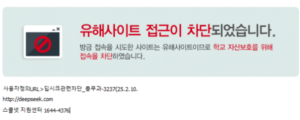이에 도교육청은 개인정보 유출을 방지하기 위해 산하 교육기관 및 유·초·중·고등학교에서 딥시크 접속을 차단하고 해당 내용을 2월 10일 안내했다.