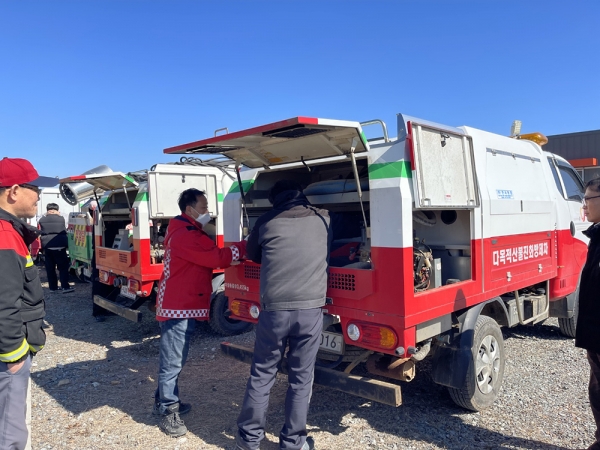 이날 점검은 산불 대응센터, 10개 읍면, 3개 의용소방대 등에 배치된 총 16대의 산불진화차를 대상으로 소방 및 기계 장비 등에 대한 점검이 진행됐다.