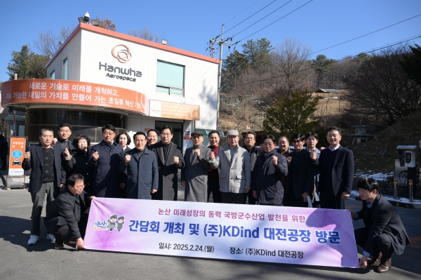 백성현 논산시장과 사회단체장들과 함께 국방군수산업의 발전 방안에 대한 진솔한 이야기를 나눴으며 이후 KDind 기업 관계자로부터 기업 현황, 주요 공정, 생산품에 대한 설명을 듣고 작업 현장을 둘러봤다.