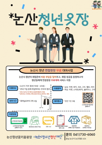 ‘논산청년옷장’은 청년들의 취업 준비 비용 부담을 줄이기 위해 면접 정장을 무료로 대여하는 사업으로 열린옷장과 협약을 체결해 서비스를 제공한다.