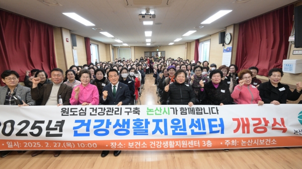 [충청뉴스큐] 논산시가 27일 주민 150여명이 참석한 가운데 ‘2025년 건강프로그램 및 주민주도 건강동아리 개강식’을 개최했다.
