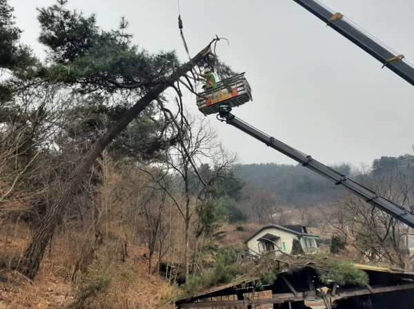 이번 작업은 태풍이나 강풍 등 자연재해로 인해 쓰러질 위험이 있는 나무를 사전에 정비해 주민들의 안전을 확보하기 위해 마련됐다.