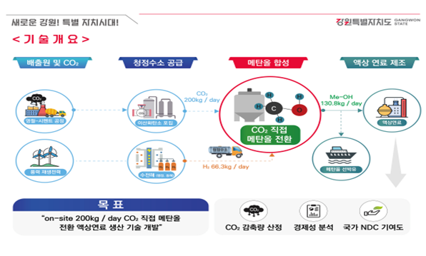 [충청뉴스큐] 강원특별자치도와 영월군은 친환경 선박 및 항공기 연료의 핵심인 메탄올 제조 인프라 구축을 위해 과학기술정보통신부에서 공모하는 ‘차세대 CCU 기술 고도화 사업’에 도전한다.
