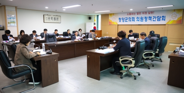 [충청뉴스큐] 청양군의회는 5일 제309회 임시회를 앞두고 특별위원회 회의실에서 의원 및 부서장이 참석한 가운데 의원 정책간담회를 개최했다.