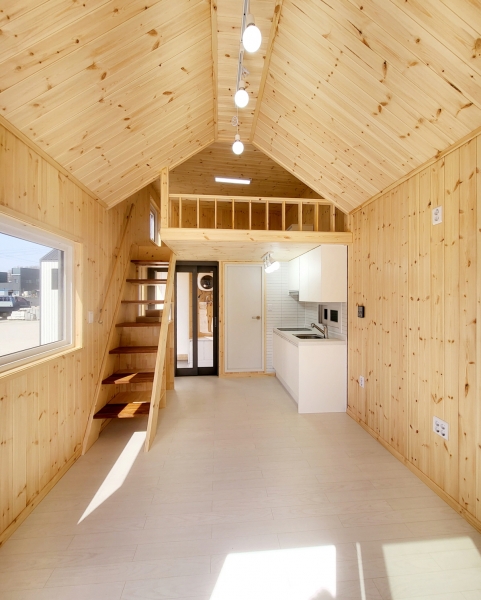농촌 체험 휴양 마을인 한방 웰니스 마을에 위치한 작은 농장은 19.8제곱미터와 9.9제곱미터 규모로 다락방을 갖춘 미니 2층 형태의 모듈형 하우스 6채로 조성됐다.