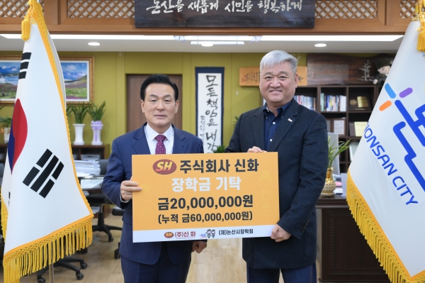 정찬욱 주식회사 신화 대표는 “기탁한 장학금이 논산시 학생들이 지역발전에 이바지하는 자랑스러운 인재로 성장할 수 있는 밑거름이 되었으면 좋겠다”는 바람을 전했다.