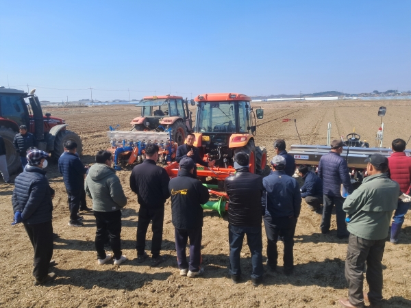 [충청뉴스큐] 논산시는 지난 17일 벼 직파재배 관심 농업인, 콩 재배농업인 등 50여명을 대상으로 ‘벼 직파재배 확대를 위한 농기계 시연 및 교육’을 실시했다.