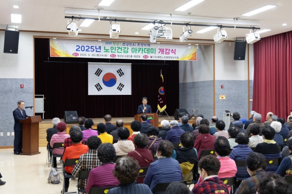 [충청뉴스큐] 대한노인회 청양군지회는 20일 정산도서관 대강당에서 정산 지역 4개면 프로그램 참여자 및 관계자 등 100여명이 참석한 가운데 ‘노인건강아카데미 개강식’을 가졌다.