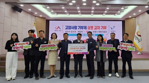 [충청뉴스큐] 충남 서산시는 21일 고향사랑기부제를 촉진하고 지역 간 상생 협력을 강화하기 위해 보령시와 교차 기부를 했다고 밝혔다.