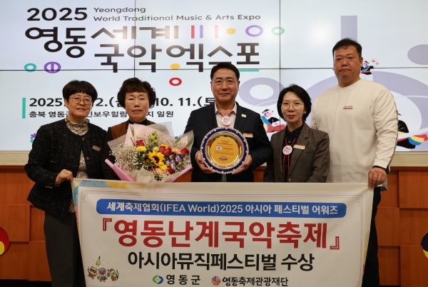 [충청뉴스큐] 충북 영동군은 영동군의 대표 축제인 영동난계국악축제가 경주에서 열린 ‘2025 아시아 페스티벌 어워즈’에서 ‘아시아 음악 축제’ 부문 수상작으로 선정됐다고 25일 밝혔다.