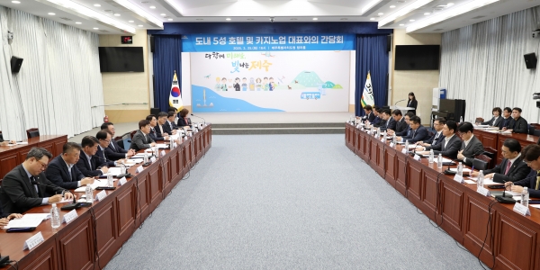 [충청뉴스큐] 제주특별자치도가 관광산업의 핵심 축인 도내 5성 호텔과 카지노 업계 대표자들과 머리를 맞대고 최근 위기 상황에 직면한 제주관광산업의 돌파구 마련에 나섰다.