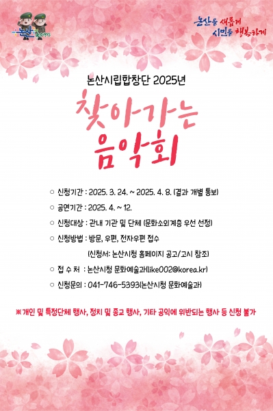 [충청뉴스큐] 논산시가 지역 사회의 화합과 문화 교류를 촉진하기 위한 ‘논산시립합창단 2025 찾아가는 음악회’를 추진한다.