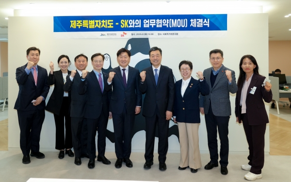 협약식에는 오영훈 제주도지사와 지동섭 SK 수펙스추구협의회 SV위원장을 비롯해 나석권 SK 사회적가치연구원 대표이사, 박재한 SK 행복나래 대표 등이 참석했다.