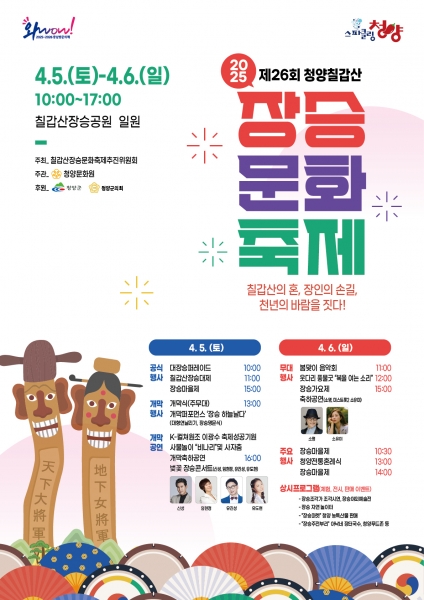 [충청뉴스큐] 칠갑산 장승문화축제 추진위원회가 주최하고 청양군이 후원하는 제26회 청양칠갑산 장승문화축제가 오는 5일부터 6일까지 이틀간 대치면 장승공원 일원에서 개최된다.