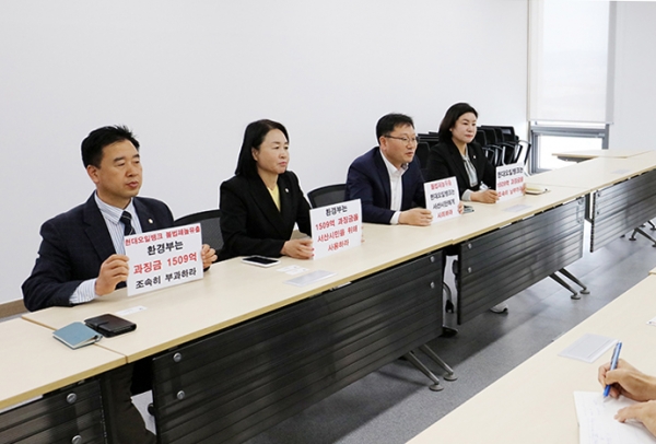 또한 지난 23년 9월 13일 한석화 의원은 환경오염대책특별위원회위원장으로서 특위 위원들과 환경부를 방문해 면담하는 자리에서 환경부가 재판전에 현대오일뱅크가 자진 신고한 1,509억원의 과징금 부과를 약속했는데 현재까지 미 이행되고 있는 부분에 대한 환경부 입장을 묻고 신속한 이행을 다시 한번 촉구했다.