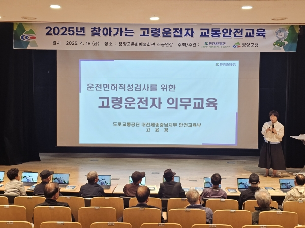 군은 지난 18일 청양군문화예술회관 소공연장에서 관내 만 75세 이상 고령운전자 60여명을 대상으로 ‘2025년 찾아가는 고령운전자 교통안전교육’을 실시했다.