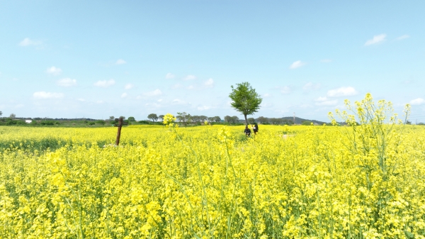 따뜻한 햇살과 푸른 하늘 아래 펼쳐진 약 9천평 규모의 유채꽃 단지는 보는 이들의 마음도 화사하게 만든다.