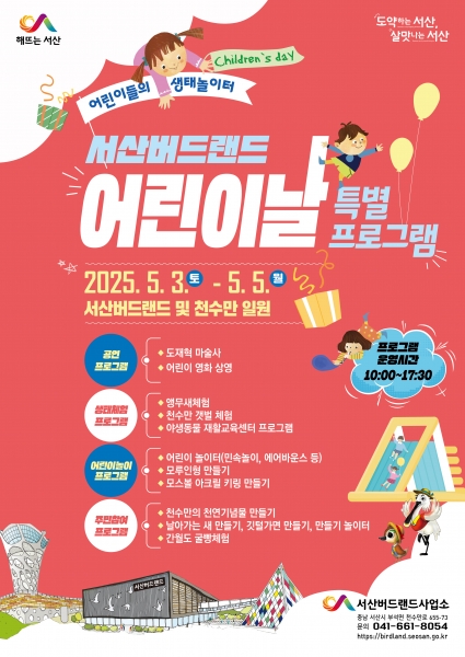 [충청뉴스큐] 충남 서산시는 제103회 어린이날을 맞아 서산버드랜드에서 다채로운 특별프로그램이 진행된다고 밝혔다.
