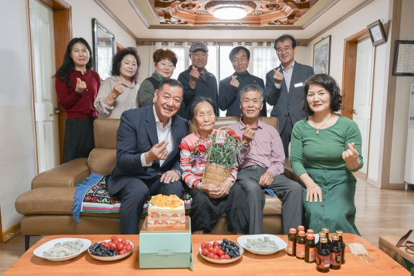 최원철 시장도 계룡면에 거주하는 103세 김기순 어르신 댁을 직접 찾아뵙고 어버이의 은혜에 감사드리며 건강을 기원하는 인사와 함께 카네이션을 가슴에 달아드리고 꽃바구니를 전달했다.