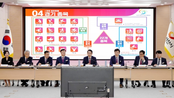 보고회는 대회 최종 준비 상황 촐괄 보고 개·폐회식 등 공개행사 연출 최종 보고 부서별 분담 업무 추진 보고 순으로 진행됐다.