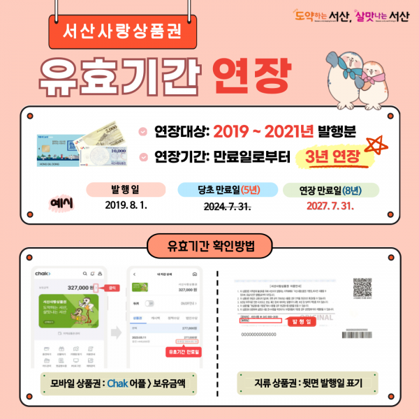 [충청뉴스큐] 충남 서산시는 2019년부터 2021년까지 발행된 서산사랑상품권의 유효기간을 3년 연장한다고 14일 밝혔다.