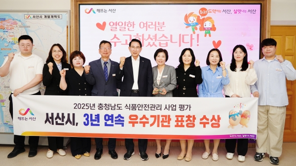 [충청뉴스큐] 충남 서산시가 식품 위생 향상과 식품안전관리에 기여한 공을 인정받아 충청남도가 주관하는 ‘식품안전관리 사업 평가’에서 3년 연속 우수기관으로 선정됐다고 15일 밝혔다.