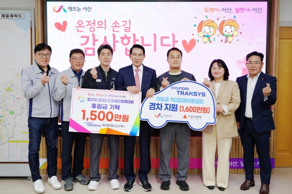 이날 기탁식에는 이완섭 서산시장, 현대트랜시스㈜ 홍석범 상무, 곽종훈 상무를 비롯해 충남사회복지공동모금회, 서산시 장애인체육회, 서산시 학대피해아동쉼터 관계자 등이 참석했다.