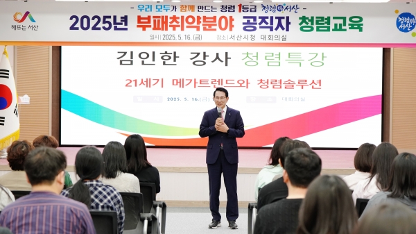 [충청뉴스큐] 충남 서산시는 16일 시청 대회의실에서 ‘2025년 부패취약분야 공직자 반부패·청렴 교육’을 추진했다고 밝혔다.