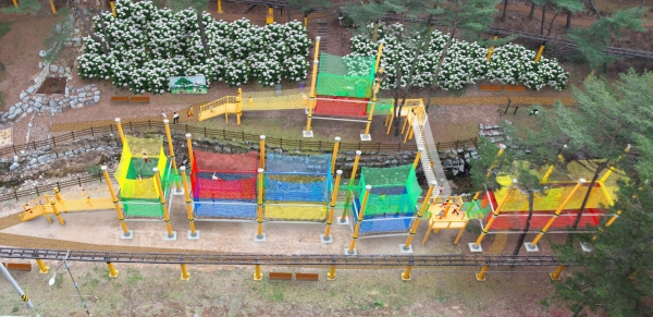 네트어드벤처 시설은 나무 구조물과 그물을 활용한 자연 친화적 놀이시설로 모험심과 신체활동을 동시에 충족시킬 수 있어 각광을 받고 있다.