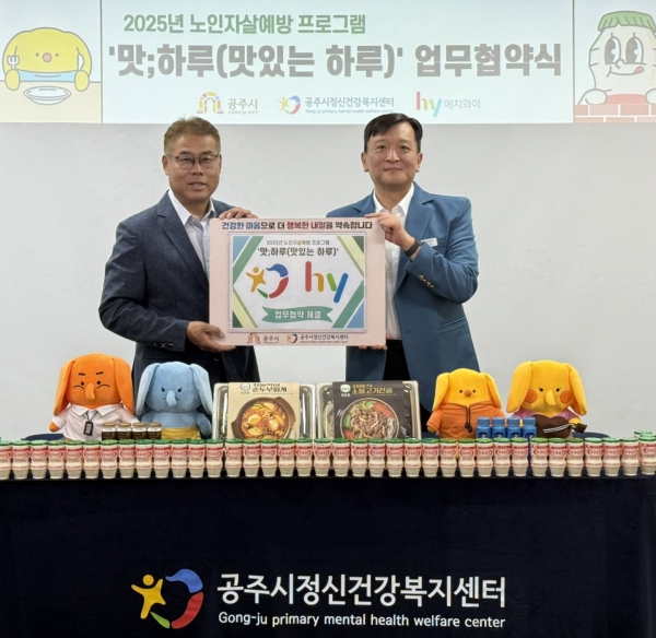 [충청뉴스큐] 공주시정신건강복지센터와 한국야쿠르트 공주점은 지난 12일 독거노인의 정서적 안정과 자살예방을 위한 ‘맛;하루’ 프로그램 운영을 위한 업무협약을 체결했다.