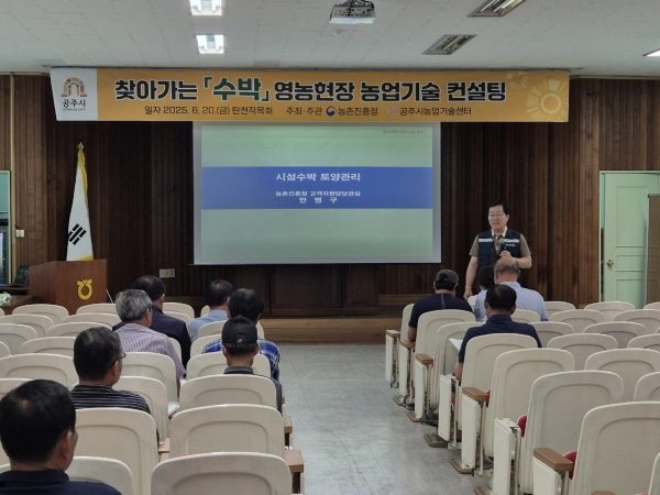 [충청뉴스큐] 공주시는 지난 20일 농촌진흥청 고객지원담당관실과 협력해 수박 재배 농가를 대상으로 연작장해 예방과 고품질 수박 생산을 위한 현장 교육과 맞춤형 기술 컨설팅을 실시했다고 밝혔다.