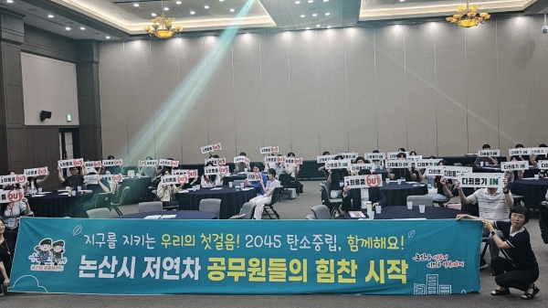 논산시는 지난 6월 23일부터 1박 2일간 충북 제천 청풍리조트 컨벤션홀에서 ‘저연차 공직자 적극행정 워크숍’을 개최하며 다회용기 챌린지를 중심으로 한 친환경 실천 캠페인을 전개했다고 밝혔다.