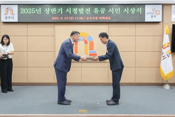 [충청뉴스큐] 공주시는 지난 27일 시청 대백제실에서 2025년 상반기 시정발전 유공시민 59명에게 표창패를 수여했다고 밝혔다.