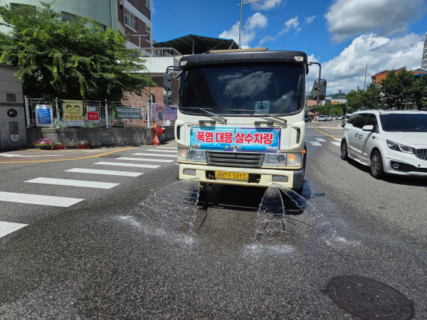 [충청뉴스큐] 충북 영동군이 연일 이어지는 폭염에 대응해 살수차를 운영, 지역사회에 시원함을 더하고 있다.