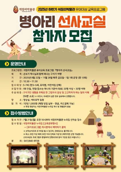 [충청뉴스큐] 공주시는 오는 8월 22일부터 11월 28일까지 석장리박물관에서 매주 금요일 ‘하반기 병아리 선사 교실’을 운영한다.