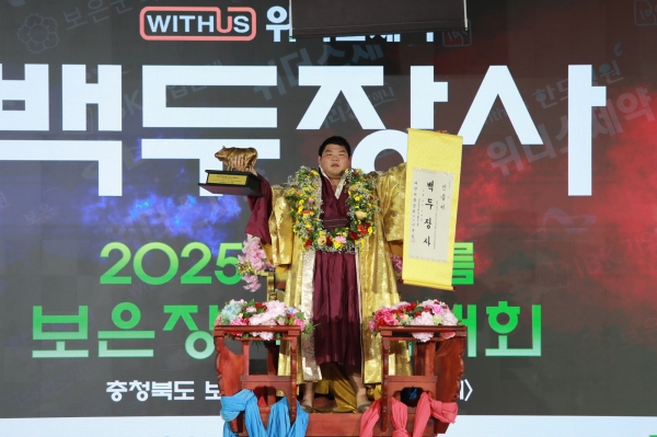 [충청뉴스큐] 보은군은 지난 5일부터 9일까지 6일간의 일정으로 보은국민센터에서 열린‘2025 민속씨름 보은장사씨름대회’ 가 성황리에 막을 내렸다고 밝혔다.