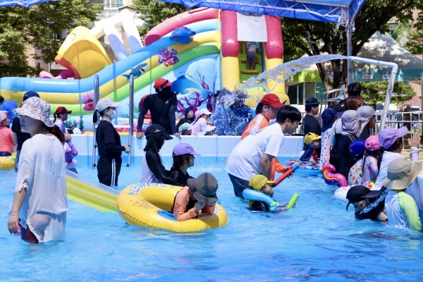 올해 물놀이장은 신장 140㎝를 기준으로 조립식 풀장을 구분해, 어린이와 청소년이 각자 체격에 맞는 공간에서 보다 안전하게 이용할 수 있도록 구성됐으며 지난해보다 한층 업그레이드된 시설로 유수풀, 중형 워터슬라이드, 워터버켓, 페달보트, 워터롤, 분수 터널 등 다양한 체험형 물놀이 시설을 추가해 물놀이의 재미를 한층 높였다.