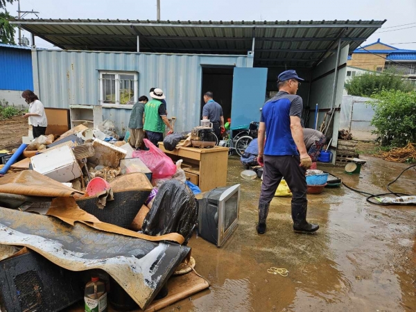 또한 화성면에서도 새마을협의회와 부녀회가 집중호우로 침수 피해를 입은 농가를 찾아 집안 청소와 토사 제거 작업을 도왔다.