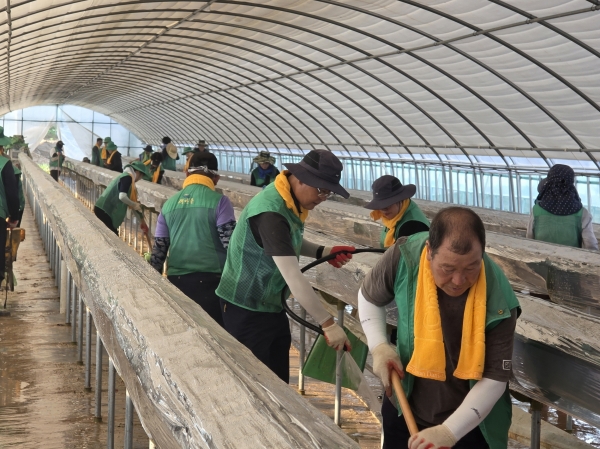 이날 봉사에는 논산시새마을회 회원 55명이 참여해 침수된 하우스 내 토사를 제거하고 폐기된 농작물을 정리하는 등 복구 작업에 힘을 보탰다.