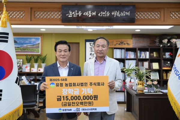 [충청뉴스큐] 논산시는 1일 논산시 소재 기업인 유정 농업회사법인 주식회사가 지역 미래 인재 양성을 위해 논산시장학회에 장학금 1,500만원을 기탁했다고 밝혔다.