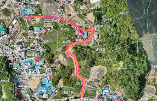 ‘마을길 토지 정비사업’은 현황상 도로로 사용되는 사유지의 경계를 조정하고 지적을 정리하는 사업이다.