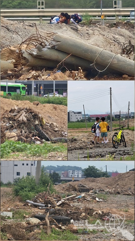 반면 8일, 서산시출입기자단 취재 결과, '트리븐 서산' 예정 부지 조성 현장의 폐기물 관리 부실 문제가 드러났다. 현장 곳곳에 폐기물이 방치되어 있었으며, 특히 안전 관리가 제대로 이루어지지 않아 인근 아이들이 폐기물이 쌓인 곳에서 놀이를 하는 모습이 포착되면서 시민들의 안전에 대한 우려가 커지고 있다.