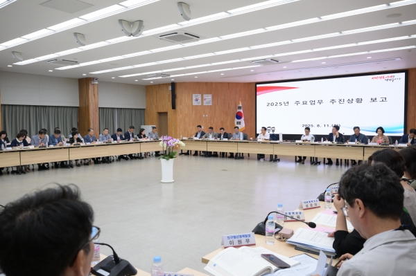 회의에서는 각 부서장이 해당 업무에 대한 추진 현황을 설명하고 예상하는 문제점과 보완 방향을 함께 공유했다.