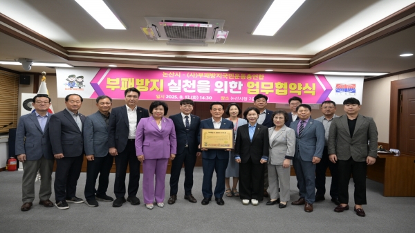 [충청뉴스큐] 논산시는 12일 논산시청 상황실에서 국민권익위원회 소관 부패방지국민운동총연합과 부패방지 문화 확산을 위한 협약을 체결했다.