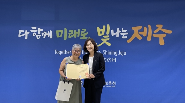 [충청뉴스큐] 제주특별자치도 보훈청은 2013년 건국훈장 애국장을 추서받은 애국지사 고 임정구 선생의 외손녀 선우 브렌다 백 씨에게 국가유공자 유족 증서를 수여했다.
