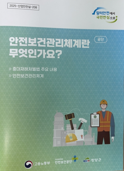 [충청뉴스큐] 청양군은 관내 사업장의 안전보건관리체계 구축을 돕기 위해 ‘안전보건관리체계 구축 미니 가이드북’을 제작·배포했다.