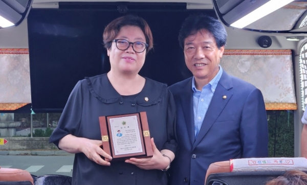 [충청뉴스큐] 서산시의회 가선숙 의원이 지난 19일 열린민주평화통일자문회의 서산시협의회 자문위원 역량강화‘이웃과 함께 아름다운 동행’에서 제21기 민주평화통일자문회의 서산시협의회 자문위원 일동으로부터 감사패를 받았다.
