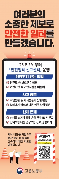 군 관계자는 “안전일터 신고센터 운영은 군민이 참여하는 안전문화 확산의 핵심 수단”이라며 “작은 신고 하나가 군민과 가족의 안전을 지킬 수 있다”고 설명했다.